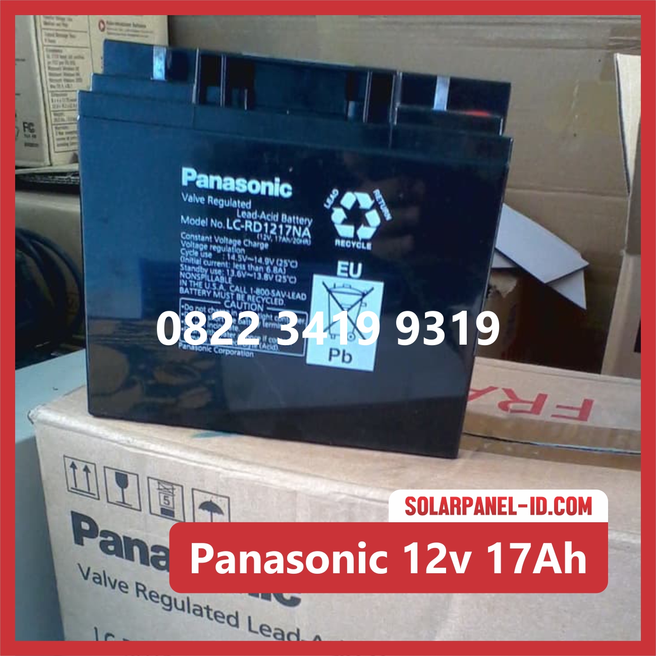 Baterai VRLA PANASONIC merupakan produk unggulan yang sudah menggunakan teknologi Valve Regulated Lead Acid merupakan jenis baterai dengan beberapa keunggulan dibandingkan baterai basah lainnya, baterai VRLA PANASONIC 12v 17Ah tidak akan tumpah dalam penempatan apapun. Selain itu Aki VRLA PANASONIC sangat stabil dalam penyimpanan listrik kecil maupun listrik besar. Aki VRLA PANASONIC 12V 17Ah merupakan baterai yang sangat sesuai untuk sistem panel surya yang dirancang untuk menghasilkan arus listrik yang stabil dan dalam waktu yang lama. Baterai / Aki jenis ini memiliki ketahanan terhadap siklus atau sering disebut cycle, sedangkan untuk pengisian (charge) dan pelepasan (discharge) yang berulang-ulang juga konstan.