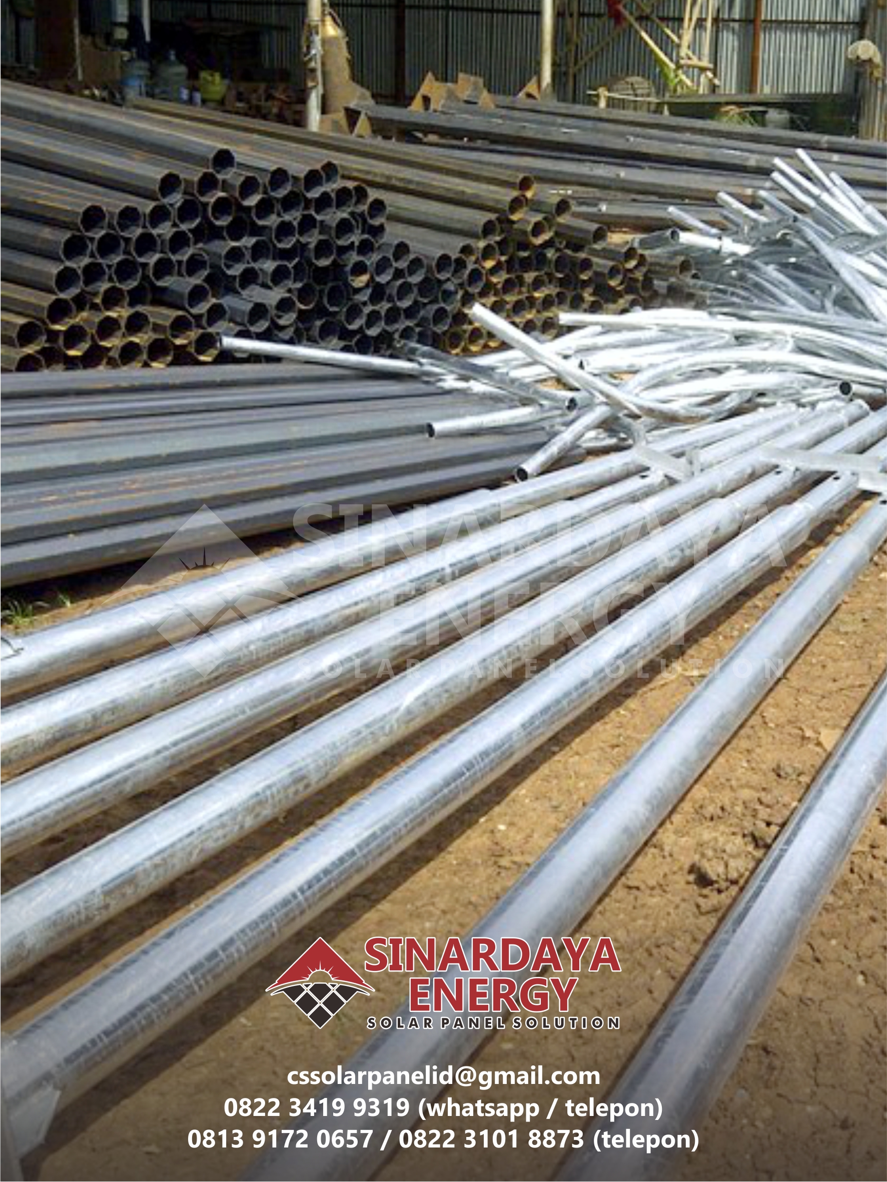 Solarpanel-id.com mempabrikasi sendiri untuk tiang-tiang besi tersebut, sehingga bahan dan harga mampu bersaing. Kami memproduksi sendiri untuk tiang-tiang listrik, seperti tiang pju, tiang pju solar cell, tiang lampu taman, tiang lampu decoratif, tiang lampu traffic light, tiang lampu warning light dan lain lain. Untuk Harga Tiang PJU kami mampu bersaing dan selain itu kami juga siap melayani permintaan tiang PJU Oktagonal / Hexagonal dengan berbagai bentuk sesuai dengan kebutuhan anda. Perusahaan kami berpusat di kota Surabaya, dimana segala akses mobilitas sangat mudah dan efisien untuk proses transaksi dan pengiriman solar cell surya dalam pulau ataupun luar pulau. Berikut adalah beberapa contoh tiang PJU yang dapat kami produksi sendiri.